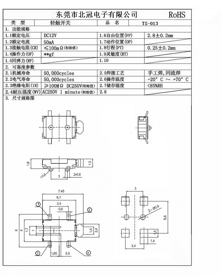 產(chǎn)品名稱(chēng):TS-013輕觸開(kāi)關(guān)