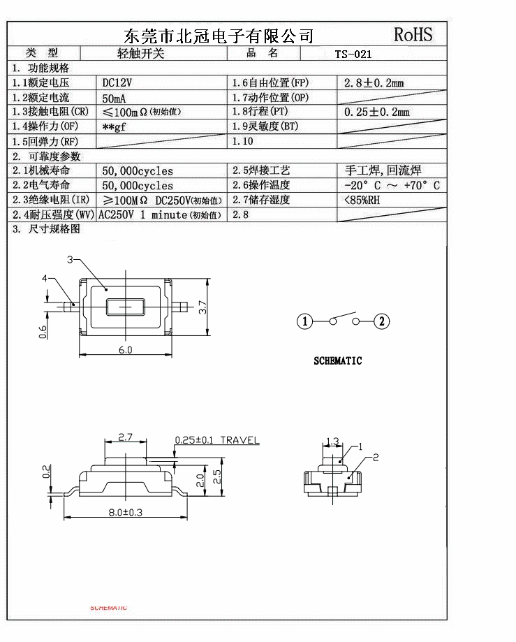 7.Travel:0.25±0.1mm