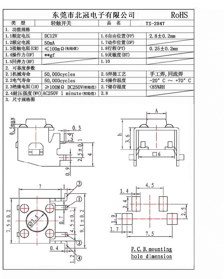 7.Travel:0.25±0.1mm