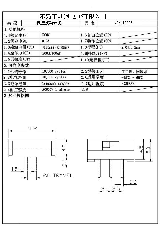 產(chǎn)品名稱:MSK-12D05撥動開關(guān)