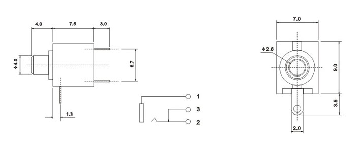 品名:2.5耳機插座 耳機插座技術參數(shù): 1.額定負荷:0.5A 30V DC 2.按觸電阻:100 mΩ max. 3.使用溫度:-20℃~70℃ 4.插拔力:3-20N 5.使用壽命:5,000cycles 耳機插座主要組成部件: 1.塑膠底座 2.磷銅或鈹銅簧片