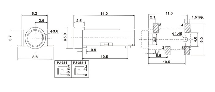品名:3.5耳機插座 耳機插座技術參數(shù): 1.額定負荷:0.5A 30V DC 2.按觸電阻:100 mΩ max. 3.使用溫度:-20℃~70℃ 4.插拔力:3-20N 5.使用壽命:5,000cycles 耳機插座主要組成部件: 1.塑膠底座 2.磷銅或鈹銅簧片