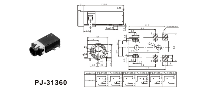 產(chǎn)品名稱:PJ-31360 品名:3.5耳機(jī)插座 |