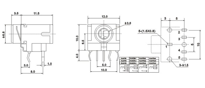 產(chǎn)品名稱:PJ-317G 品名:3.5耳機插座 |